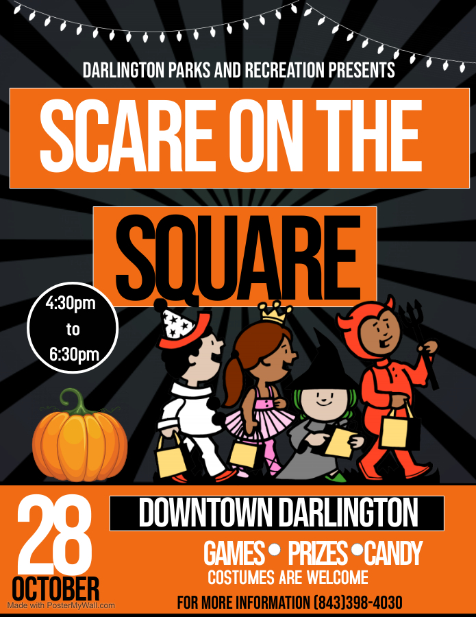 Scare on the Foursquare returns from 4:30 p.m. to 6:30 p.m. Thursday, Oct. 28, downtown! Call Lisa 843-992-1561 to reserve a tabular array for your concern or for vendor spaces.